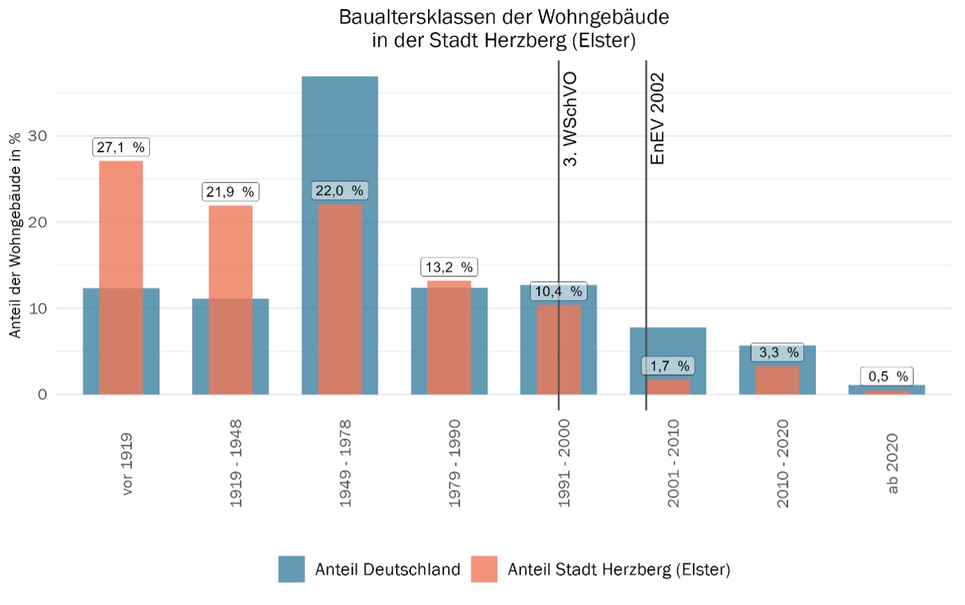 - Rund 70 % der Wohnhäuser wurden vor 1979 gebaut – viele davon sind energetisch sanierungsbedürftig.