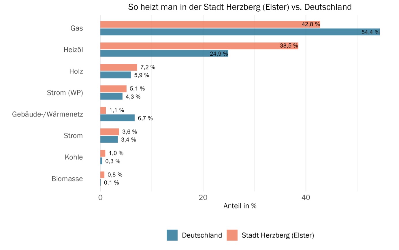 Herzberg ist heute noch stark von Öl und Gas abhängig. Viele Gebäude sind alt und haben einen hohen Energieverbrauch. Gleichzeitig gibt es erste Strukturen wie Fernwärme und erneuerbare Ansätze, die künftig ausgebaut werden können.